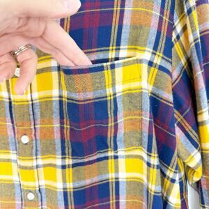 Sun River Men's XL Long Sleeve Navy & Yellow Plaid Flannel Button Down Shirt