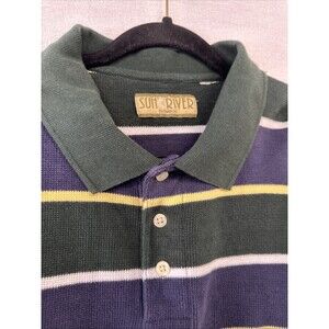 The Sun River Men's XL Y2k 90s Long-Sleeve Polo with waffle-knit green stripes is a nostalgic and unique addition to any wardrobe. Made from a comfortable blend of polyester and cotton, this shirt features a classic crew neck and regular fit, perfect for a casual yet stylish look. The green striped pattern adds a touch of retro charm, while the all-season design makes it versatile for year-round wear. Whether you're channeling your inner grunge or preppy vibes, this Sun River polo is sure to be a standout piece in your collection.