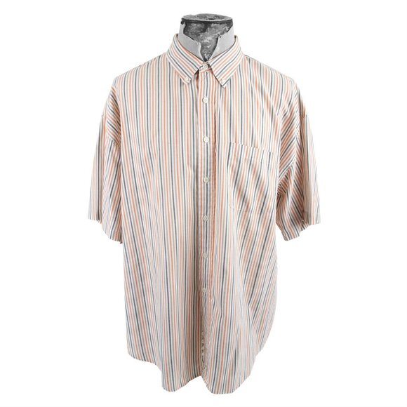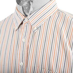 This Sun River men's button-front shirt in size XL is a great everyday essential with a sharp, clean look. Made from a comfortable blend of 60% cotton and 40% polyester, it’s designed to be wrinkle and stain resistant—making it perfect for work, travel, or any occasion where you want to look put-together without the hassle. The vertical stripe pattern features a striking mix of orange, black, gray, and white, giving it a modern and eye-catching vibe. With a classic collar, full button front, and a relaxed fit, this shirt is both practical and stylish. Great for dressing up with slacks or keeping it casual with jeans.