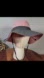 Pink and gray wide brim sun hat. Side snap allow for sides to. e snapped up. Adjustable chin strap. Back opening for ponytail to be worn through.