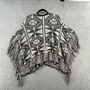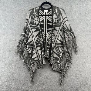 Sun & Shadow Blanket Sweater Boho Festival Aztec Print Fringe Beachy Gray and White
