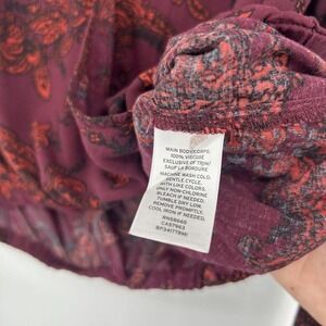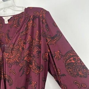 Elevate your bohemian style with this gorgeous Sun & Shadow Burgundy Drape Front Crop Top. The top features long bell sleeves with intricate crochet detailing that adds a touch of elegance to any outfit. The V-neckline and pullover closure make it easy to slip on and off, while the elastic waist and collarless design ensure maximum comfort. Perfect for travel, parties, and casual wear, this blouse is made of breathable viscose material that keeps you cool and comfortable all day long. The paisley pattern and bold burgundy color add a pop of color to your wardrobe.