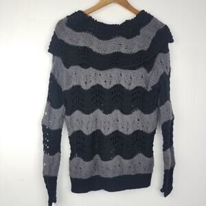 Sun & Shadow | Cowl Neck Knit Sweater Blk Gray S