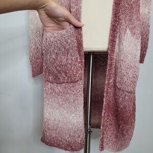 Sun & Shadow Longline Knit Pink Long Sleeve Ombre Open Front Cardigan Sweater