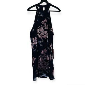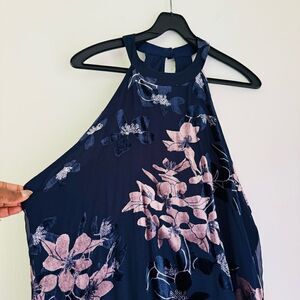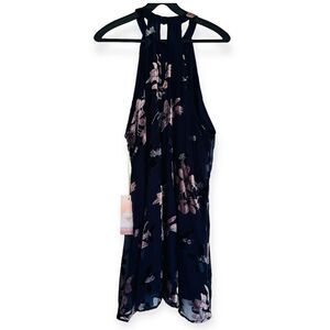Sun & Shadow Navy Floral Velvet Keyhole Back Mini Dress Size XL