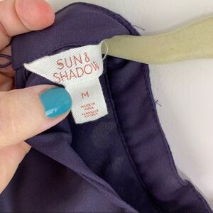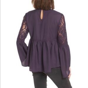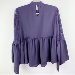 Sun & Shadow Purple Lace Inset Peplum Top Bell Sleeves M