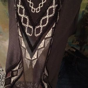 Worn twice great with jeans or white pants. The panel down the front is mesh.