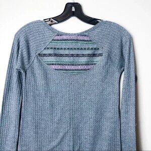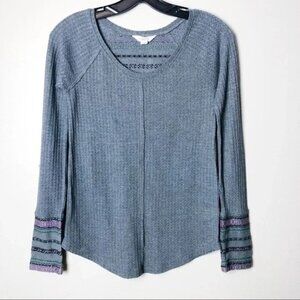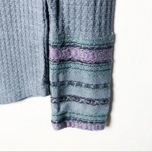 Sun & Shadow X-Small Waffle Knit Gray & Purple Long Sleeve Top