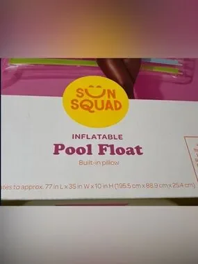 Sun Squad inflatable pool float in multicolor. Bright striped design with built-in pillow for added comfort. Lightweight and easy to inflate for relaxed pool days.