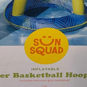 Sun Squad, NWT, inflatable, water, basketball, hoop, set with textured grip ball