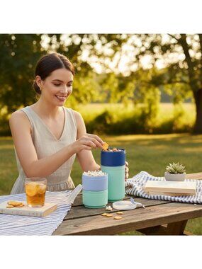 Sun Squad Stackable 3-Piece Reusable Container Set With Handle - Microwave Safe