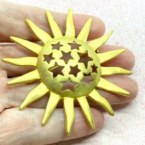 Sun & Stars Goldtone Matte Vintage Brooch measures approx 2.5". Very nice condition, has nice spring clasp. Stars are cut out from center, circa 1980's. El Sol matte sun is in perfect condition and due to matte finish can be enjoyed for many lifetimes to come! #42-A