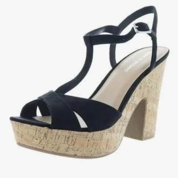 Sun & Stone Jamie T-Strap platform dress sandals black size 10 M new and in the box