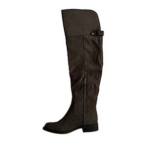 Sun Stone ALLICCE Women's Low Heel Over Knee Boots Dark Gray
