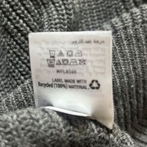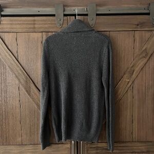 > Gray knit with a shawl collar