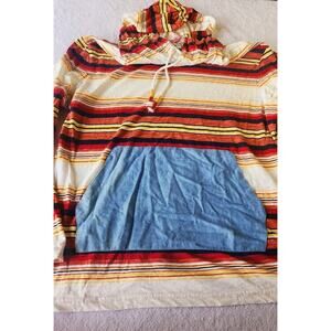 Sun + Stone Baja Stripe Pullover Lightweight Hoodie Long Sleeve Surf Shirt XL