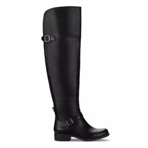 Sun + Stone Black Wide-Calf Buckled Over-The-Knee Boots -- Size 6
