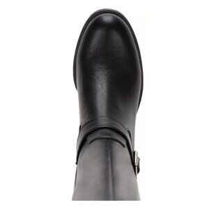 Step into the season with a bold, equestrian-inspired flair, courtesy of Sun + Stone. These over-the-knee boots elevate your fall wardrobe with their striking silhouette and statement buckled straps. Crafted with a 1-1/4" block heel for the perfect balance of height and comfort, they feature a sleek round-toe design and a convenient inner ankle zipper for effortless wear. The stretch gore panel at the back ensures a flattering fit, while the memory foam footbed offers all-day comfort. Ideal for pairing with sleek leggings or a fall sweater dress, these boots are not just about style—they are made in a factory supporting women's empowerment and gender equality through the RISE program. For more information on RISE, search https://riseequal.org/about-rise/.