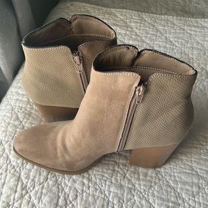 Only worn once booties with a memory foam sole and are super comfortable to walk in