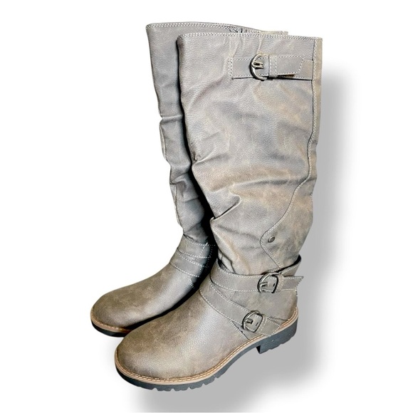 Sun + Stone Brinley Faux Leather Tall Riding Boots Charcoal NIB