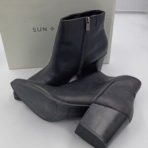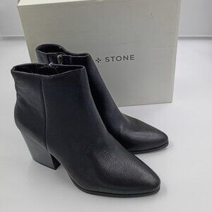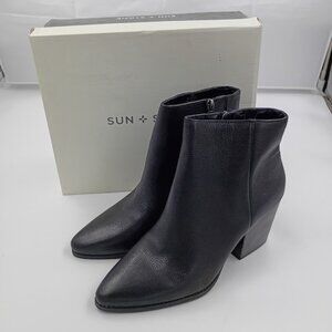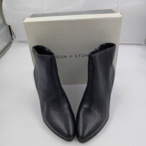 Sun + Stone Eryn Block-Heel Booties, Black Leather, Women's Size 9.5