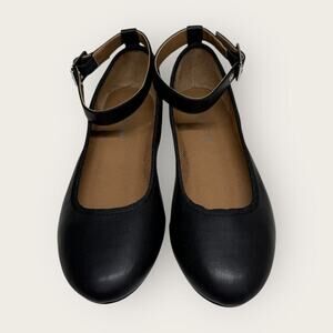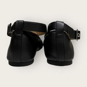 Sun + Stone | Luellaa Buckle Ankle Strap Ballet Flats | Black | Size 8