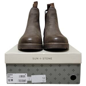 Sun + Stone Men Hawkes Chelsea Ankle Boots Size US 12M Grey Faux Leather