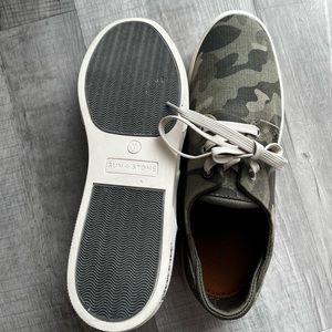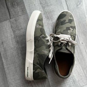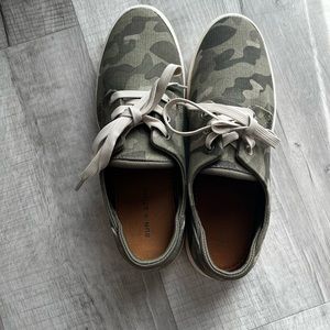 Men’s canvas shoes Army green and grey camo pattern with white laces. Cushiony insoles for comfort walking. Two different color soles for uniqueness. Like new condition. pet/smoke free home. camo shoes, Men’s canvas shoes, comfort shoes, walking shoes, business casual, fashion statement