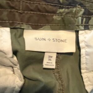 Sun + Stone Men's Green Camouflage Cargo Pants straight leg size 38W 30L