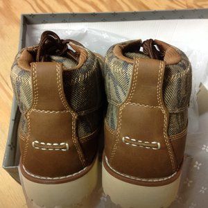 Up for sale is a brand new in the box pair of men's Sun + Stone Kohen camo printed lace up chukka boots with brown faux leather details, USA size 11.5 medium. These chukka boots are made with printed camo canvas & faux leather uppers and fabric linings with rubber soles. I only ship to USA.