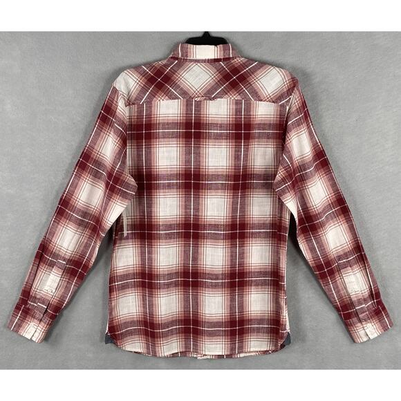 Sun + Stone Men's Small Woven Long Sleeve Button Up Shirt Raspberry Plaid NEW