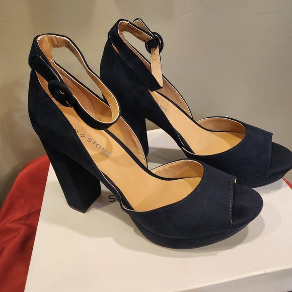 Sun & Stone, Navy - Blue Suede, Block Platform, size 7.5 wide