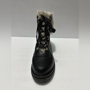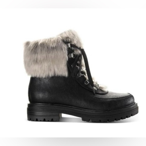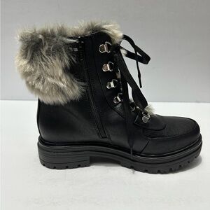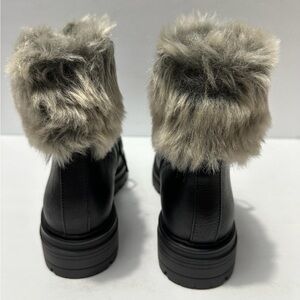 Sun + Stone Orlaa Ankle Derby Booties Women's 7m Black Faux Fur Detail Lace Up