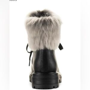 Manmade/faux-fur upper; manmade/faux-fur lining; rubber sole