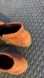 Stylish tan booties with side zipper. Perfect for versatile wear.
