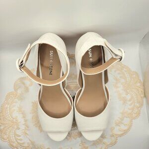 Sun Stone White Snake Cork 9.5M Platform HIgh Heel Sandal