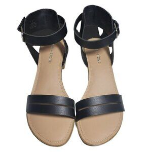 Condition: NWB - Alecta Black Open Toe Ankle Strap Buckle Flat Sandals
