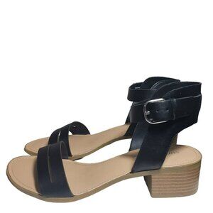 Sun Stone Women Alecta Black Open Toe Ankle Strap Buckle Block Heel Sandals Sz 9