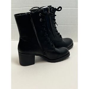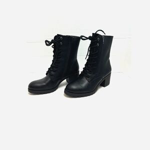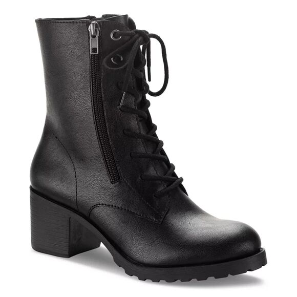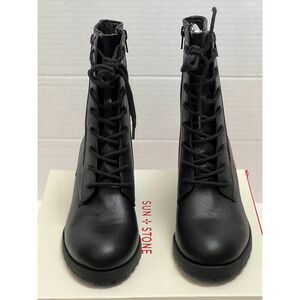 Sun + Stone Women Sheilaa Faux Leather Block Heel Combat & Lace-Up Boots