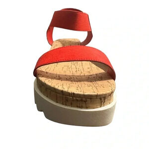 Sun + Stone Womens Melanyy Slip On Open Toe Wedge Sandals Red