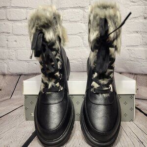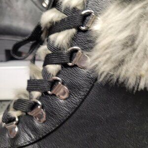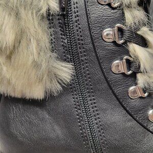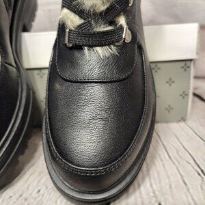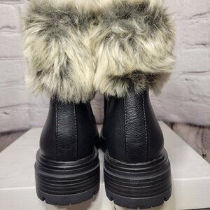 A chunky lug platform grounds the fresh hiker style and comfy faux-fur details on the Orlaa cold-weather booties from Sun + Stone.