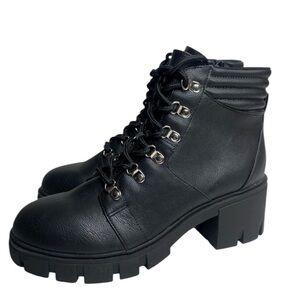 Sun + Stone Womens Ruthee Faux Leather Ankle Combat Boots Black Size 11 NWOB