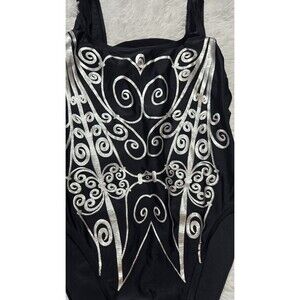 Sun Streak Newport News Black One Piece Swimsuit & Skirt Size 10