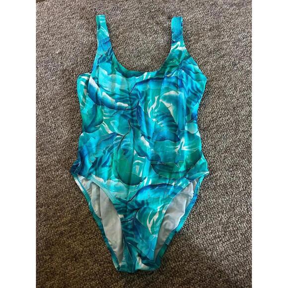 VINTAGE womens size 12 Sunstreak by Newport News one piece bathing suit. Excellent shape. Beautiful ocean blue color.