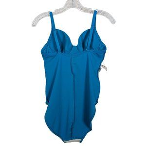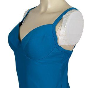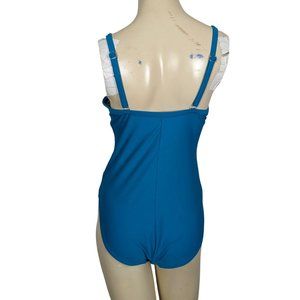 This Vintage Sun Streak by Newport News one piece Swimsuit Size 10 is in excellent condition and is a beautiful blue. If I would see anything wrong with this swimsuit it would be the padding in the bra - the padding is just as smooth but it is still in very very good condition.