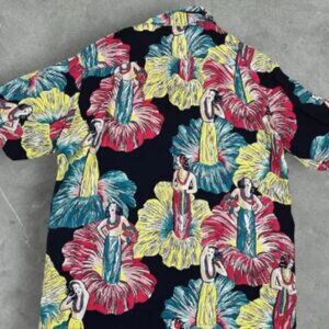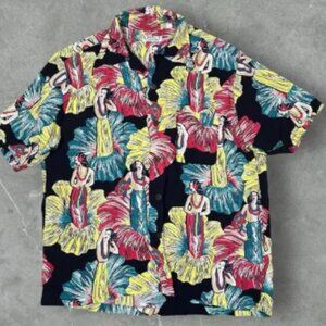 Sun Surf 100% Rayon Hula Girl Print Aloha Hawaiian Shirt Japan Made Medium