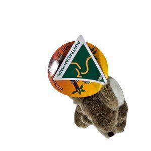 This Sun Wood Souvenir plush kangaroo, standing at 10", comes in a delightful tan hue. The kangaroo features a pouch and an adorable baby, beautifully crafted with polyester fibers and is proudly made in Australia.