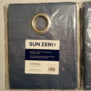 Sun Zero Cooper Thermal Insulated Room Darkening Grommet Curtain Panels offer energy efficiency and elevated design with a woven texture complemented with a modern metal grommet top for easy hanging on a standard curtain rod up to 1.5" in diameter. 40 in (102cm) x 63 in (160cm) Heathered Blue color. This sale includes 2 panels/curtains.