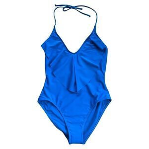 Sun and Sea | Blue Ruffle Halter One-Piece Women XS Swimsuit NWT
