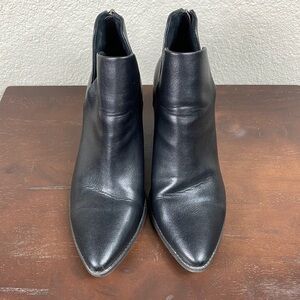Sun and Stone Elizaa Black Ankle Boot Stacked Heel Notched Slit Bootie Sz 10